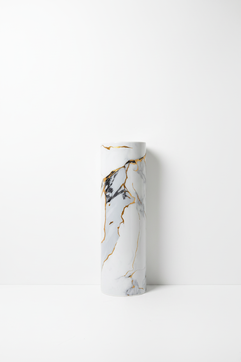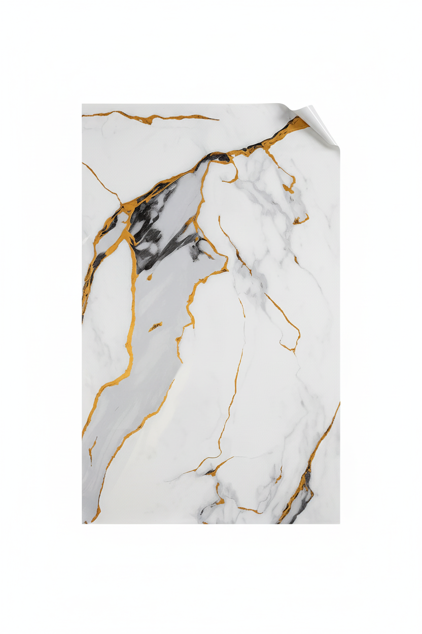• Декоративно самозалепващо фолио – Бял мрамор с драматични златни жили „Imperial Gold“ (120×300 см)