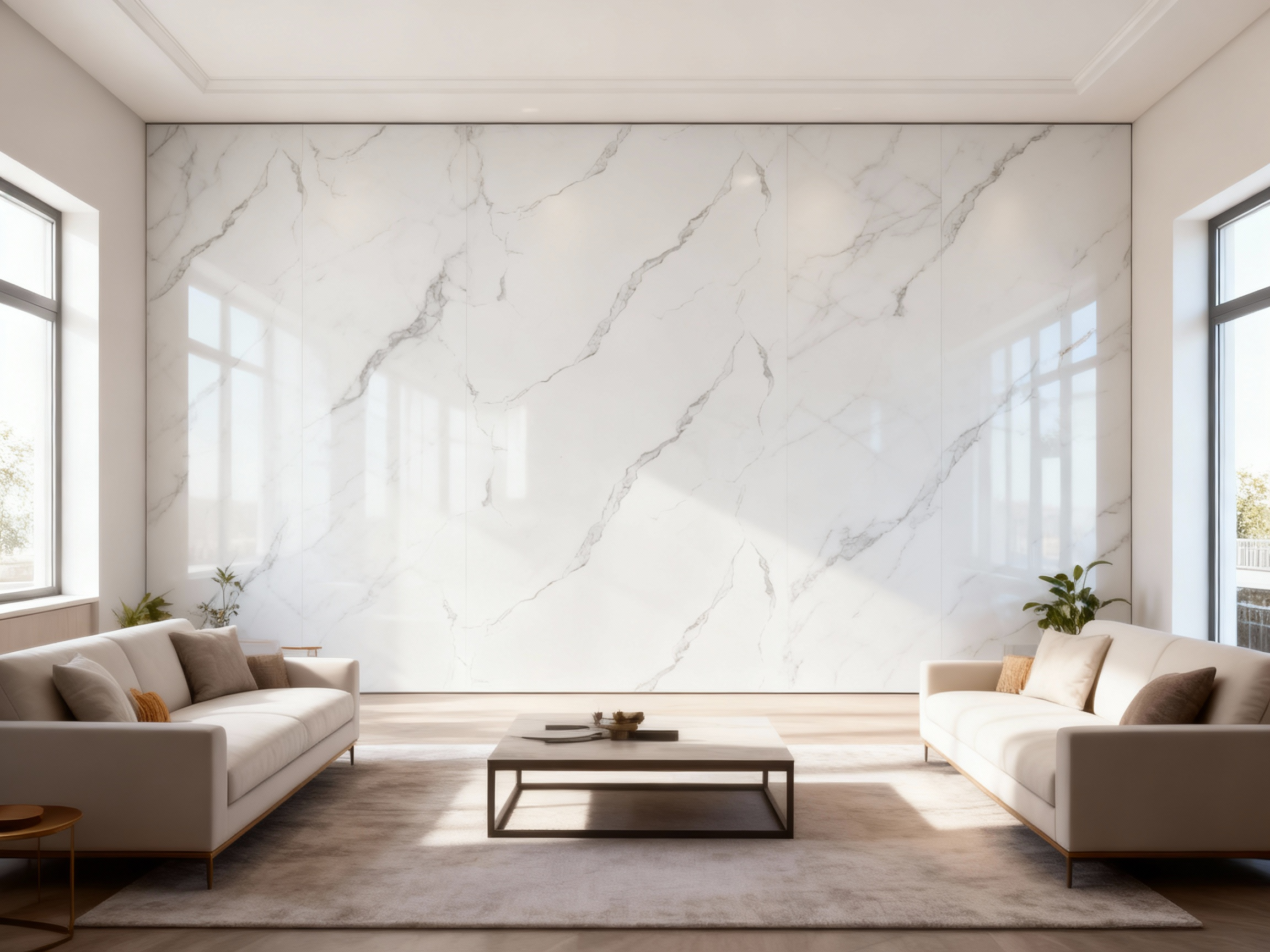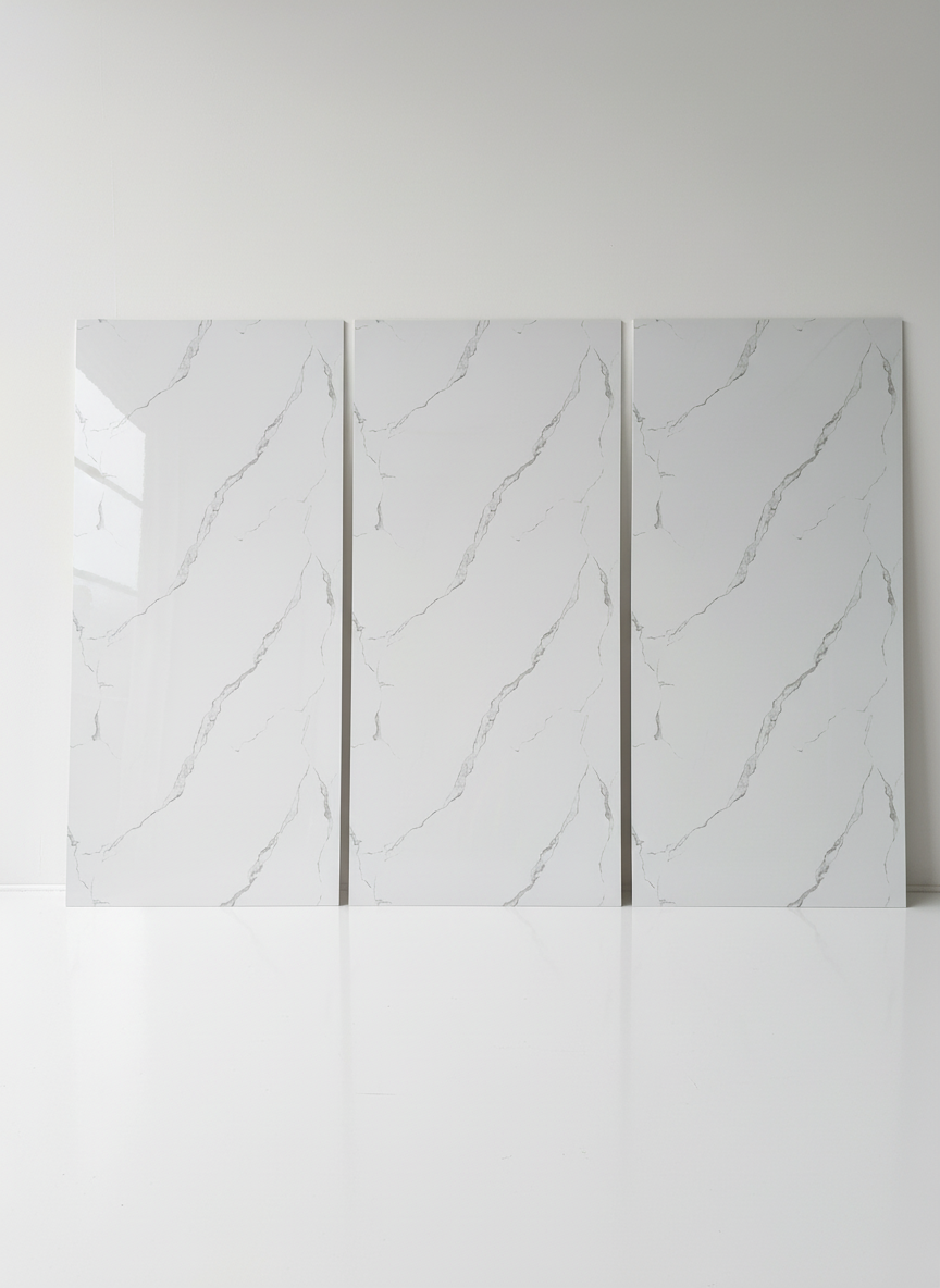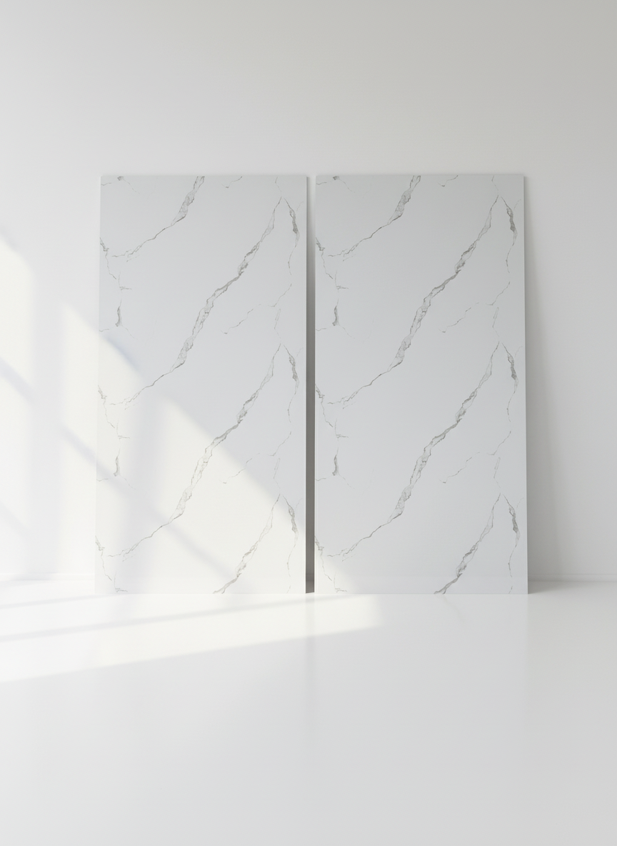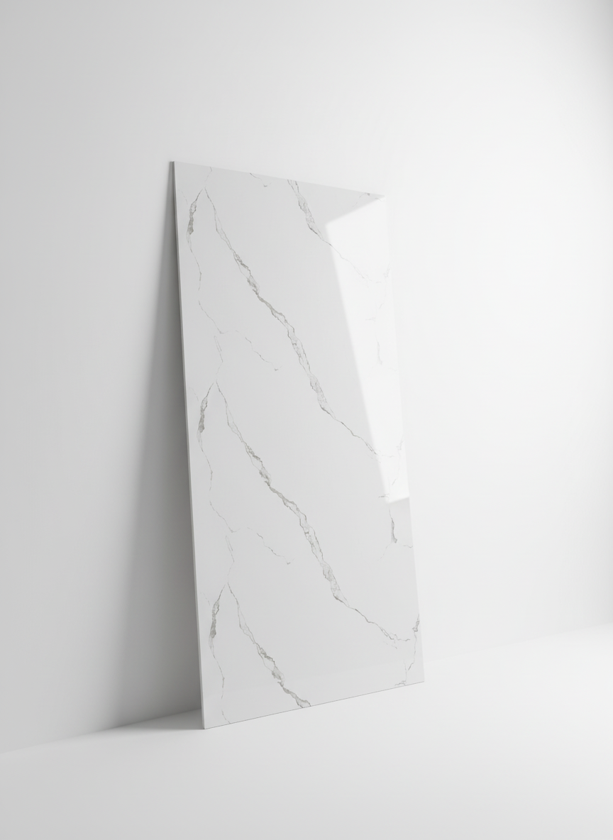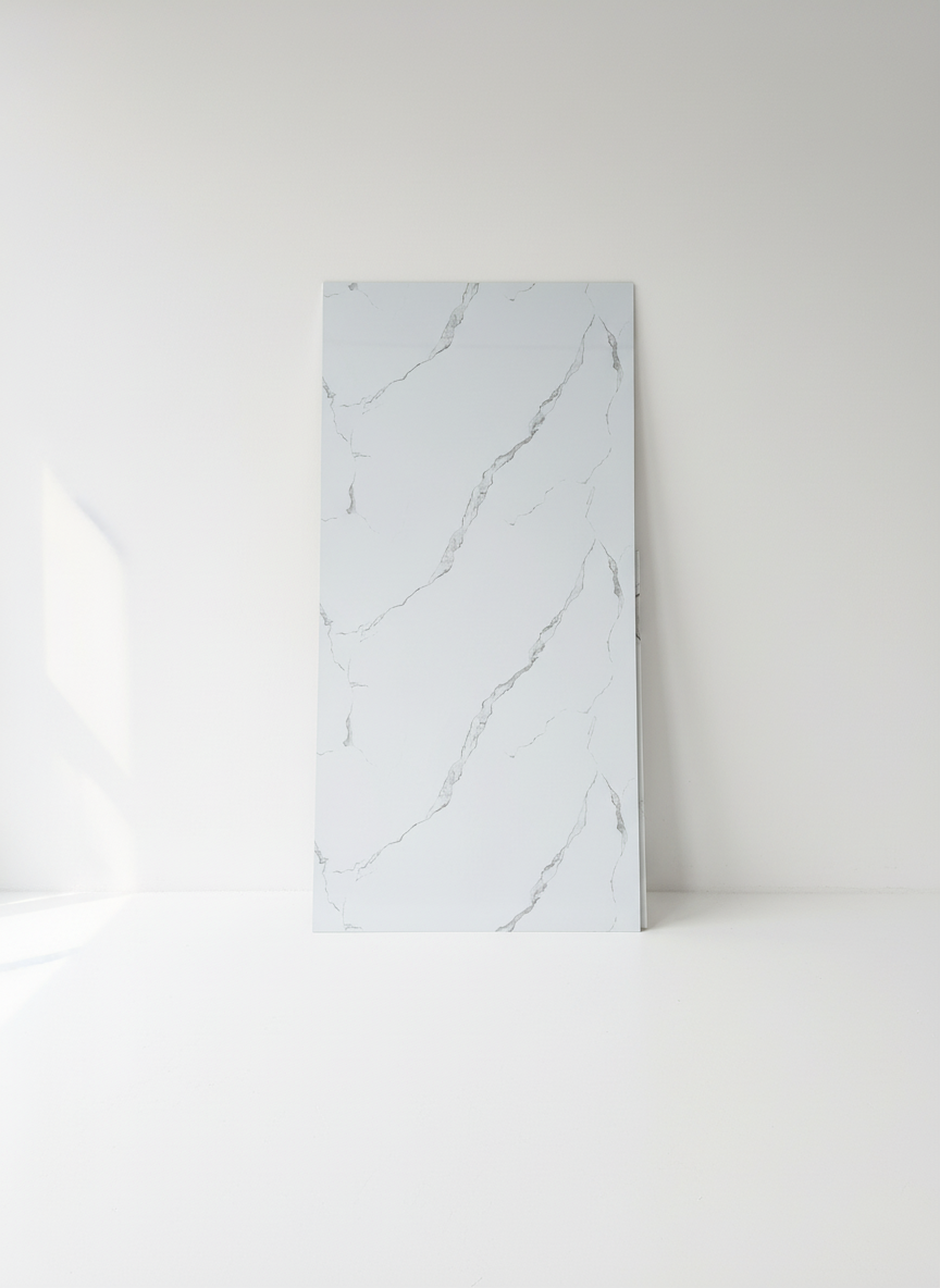 Фин мраморен десен със светли сиви вени за светъл и чист вид. Размер 122 × 260 × 3 мм. Перфектен за минималистични пространства и сканди стил.