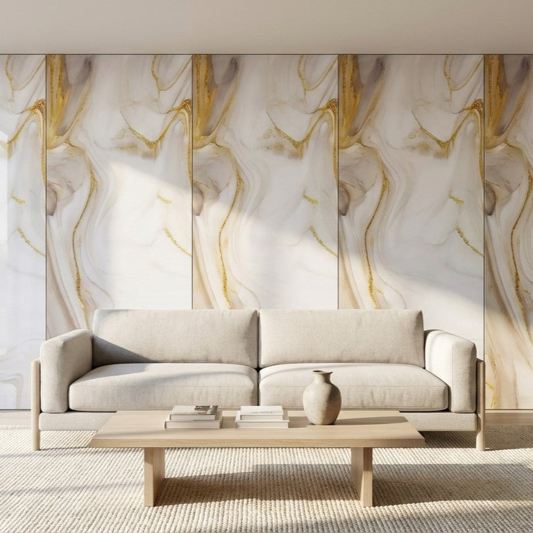 ПВЦ панел Оникс Златен Вихър – кремаво със златни течения (122×260 см) Зареждане