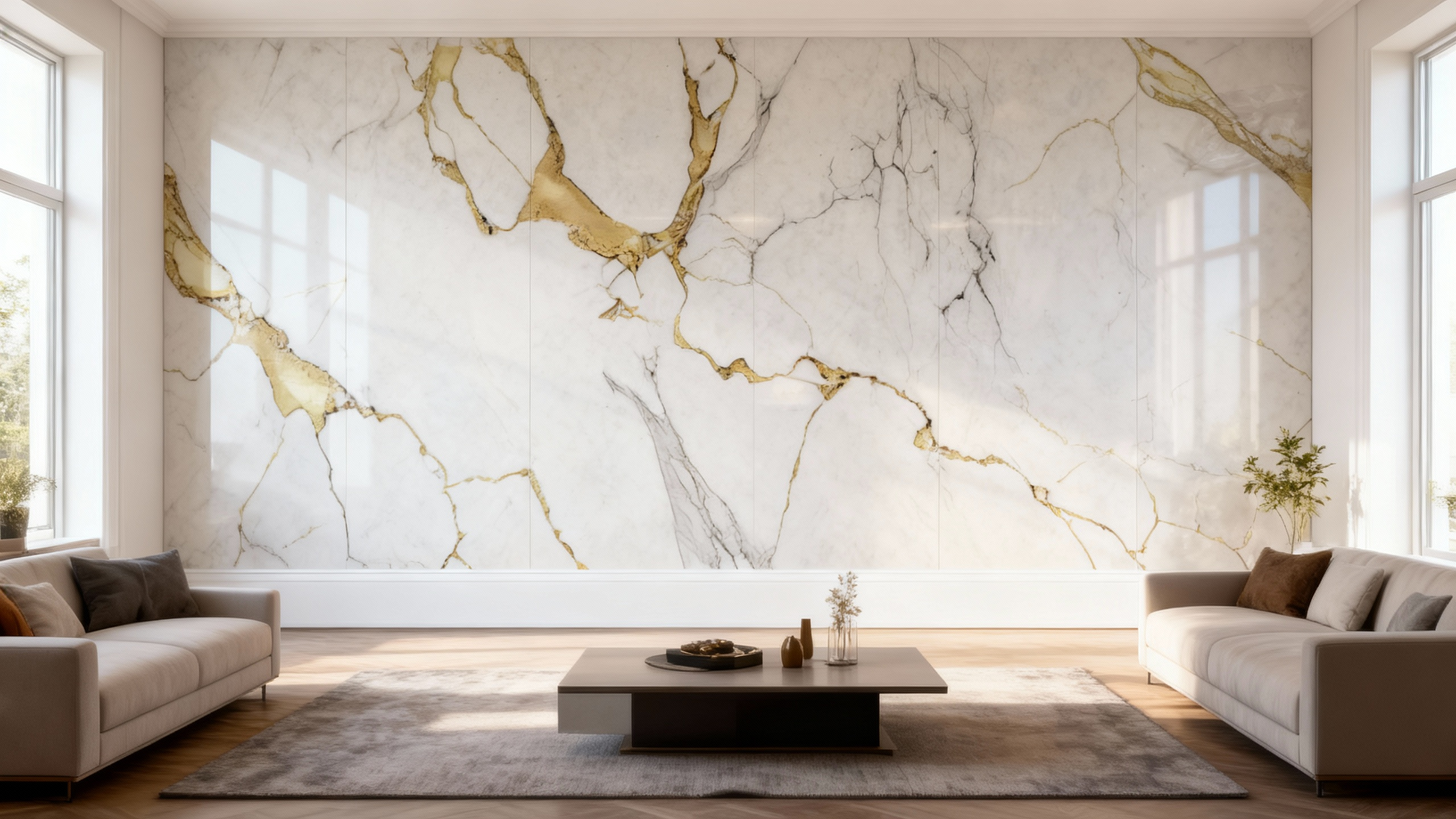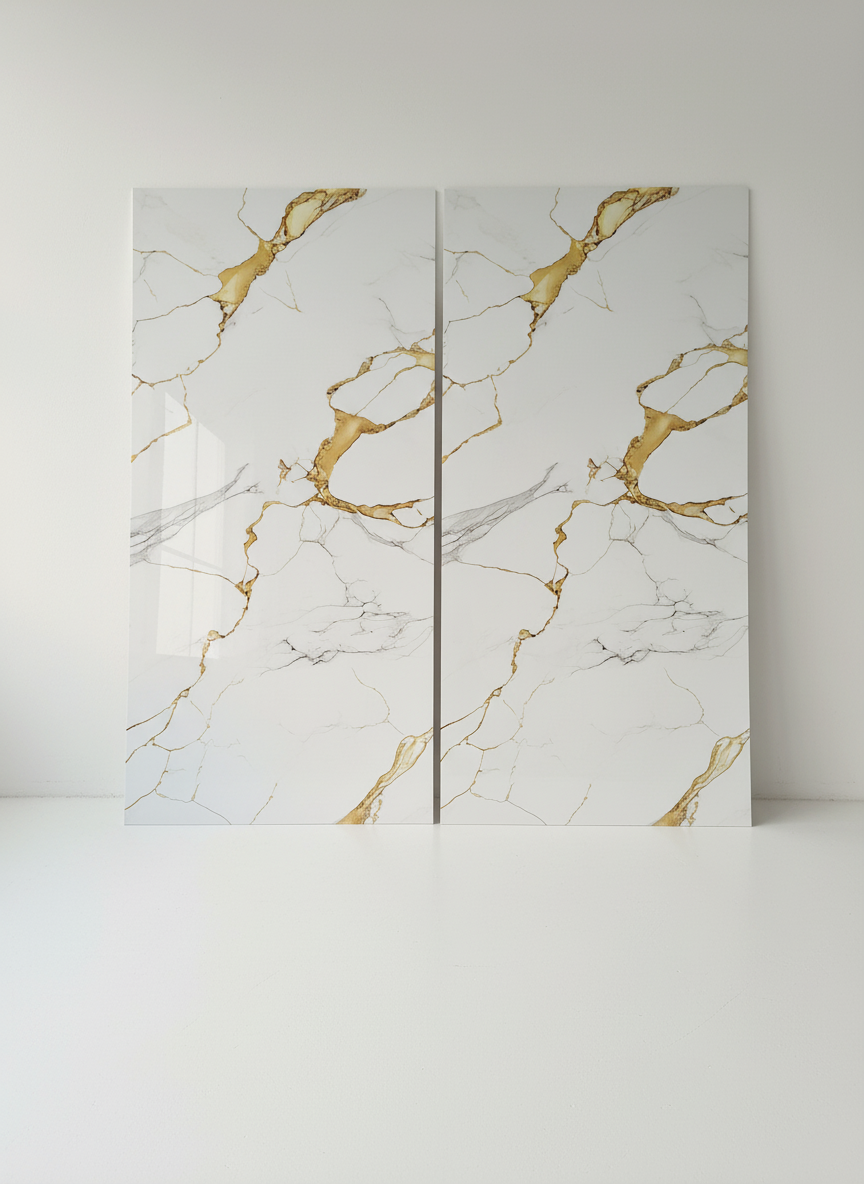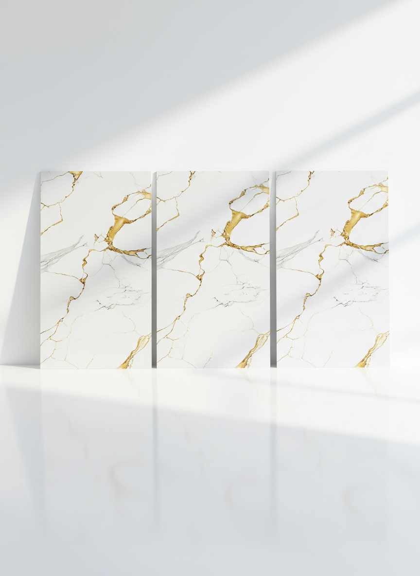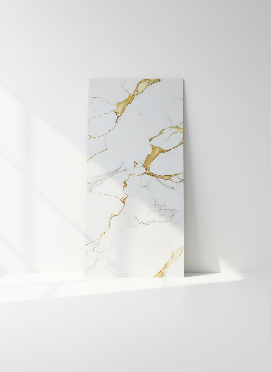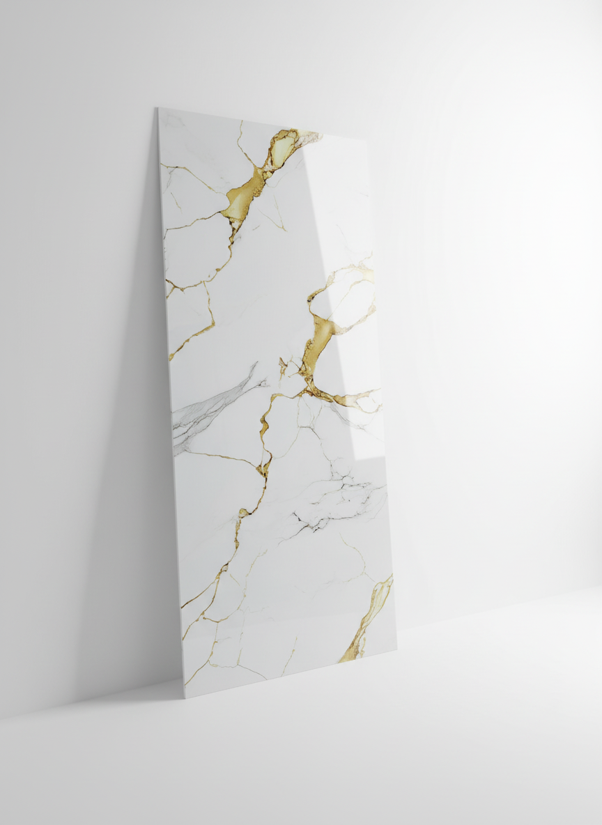 ПВЦ панел Калаката Злато – бяло със златни вени (122×260 см)